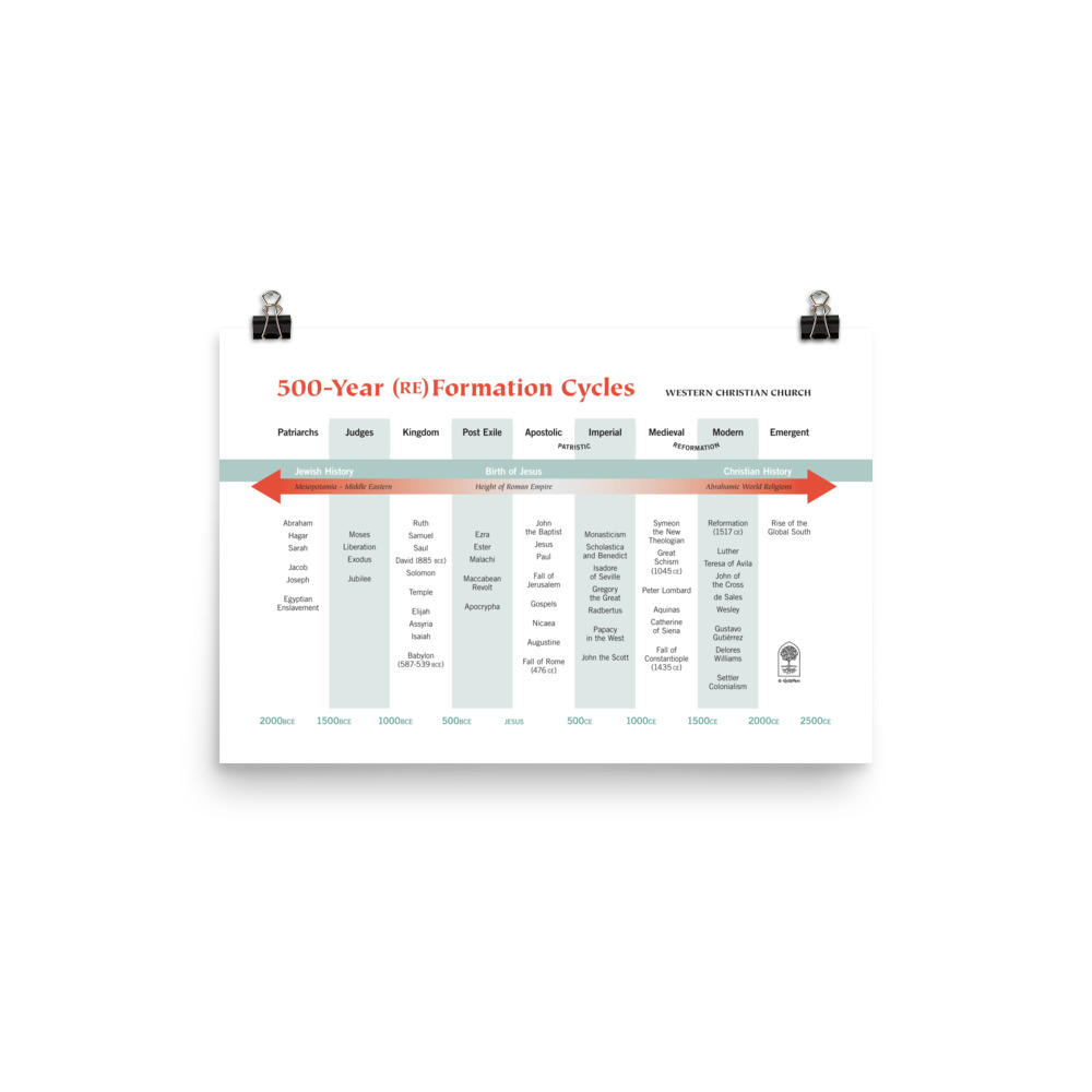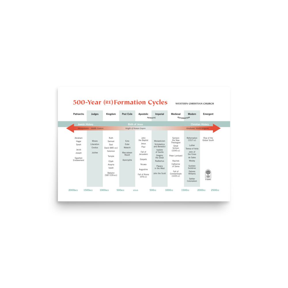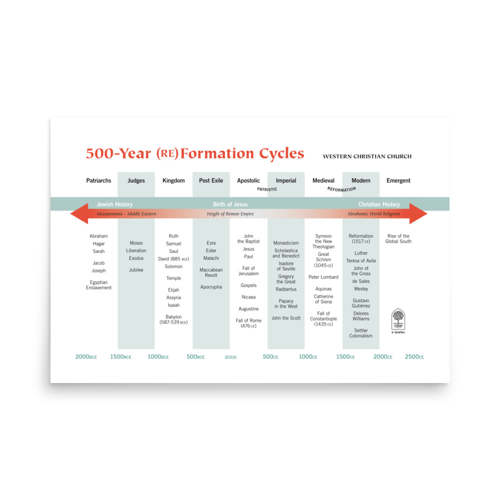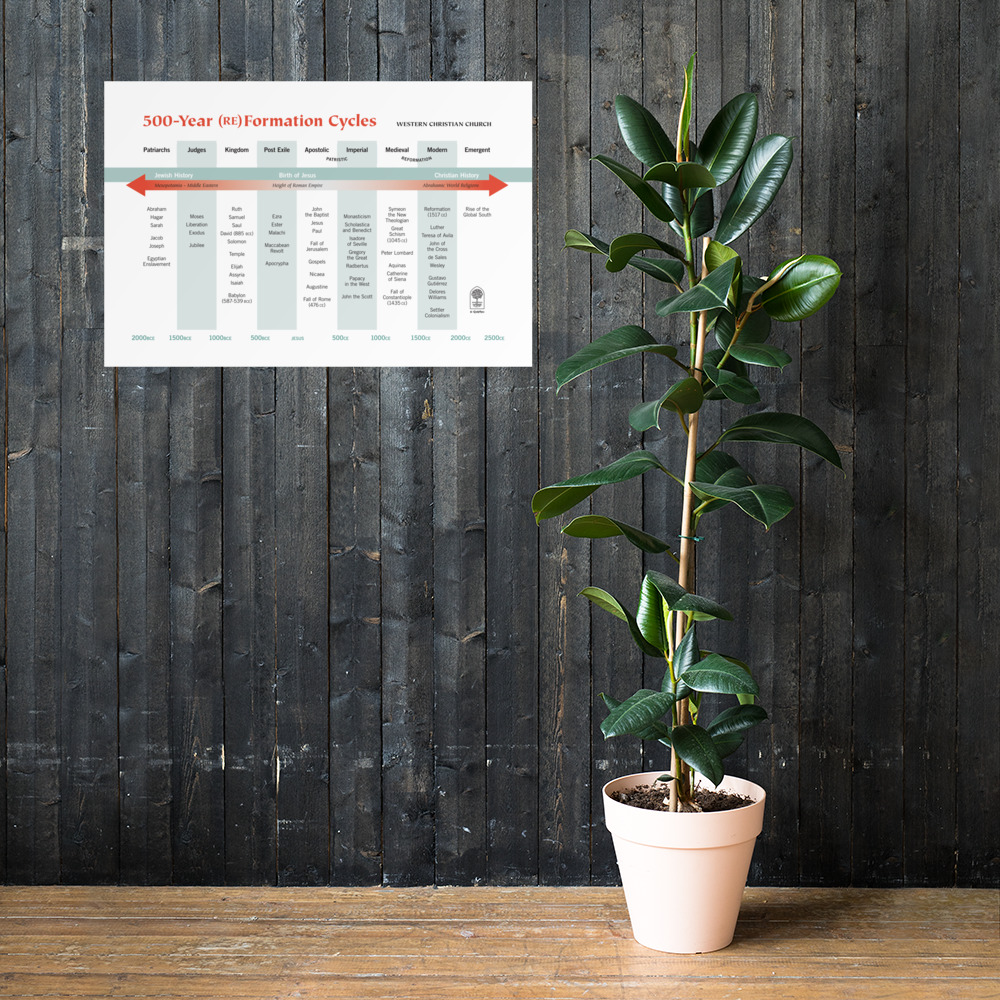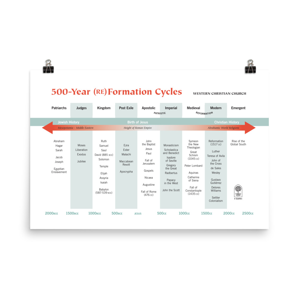 Finally! The major historical themes, events, and persons that have impacted the trajectory of Western Christianity are now condensed into a poster! Who hasn’t been waiting for this?! Easy on the eyes! Easy on the wallet! You can notice the absence of your pet theologian from any angle because the matte, museum-quality paper reduces glare. Use a fine-point marker to add all the missing dates that matter to you and make it your own. Multiple sizes are available for personal, group study, and classroom use. You may also use this poster as a luxe wrapping paper for theo-nerdy Christmas gifts.